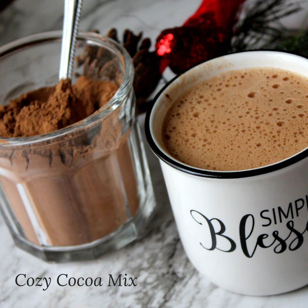 I am super excited to be bringing this Cozy Cocoa Mix along with some of my Cozy White Cocoa Mix and my Healthy Peanut Butter Cup Cocoa Mix to our gatherings this holiday season.