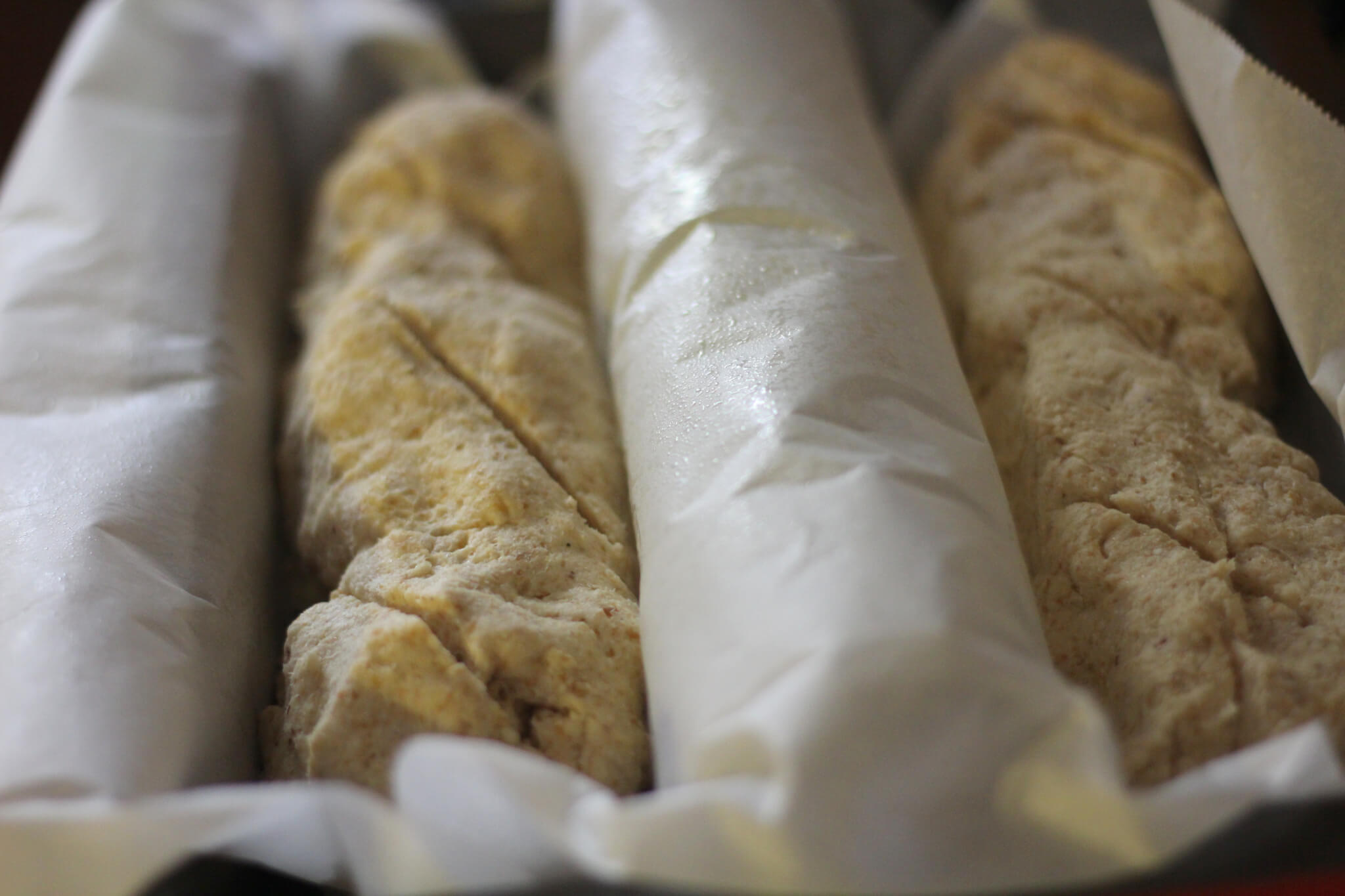 - Quickly score/slash the top of the loaves. Cover pan with a damp kitchen towel and allow to rise for 1 hour in a warm draft free space.