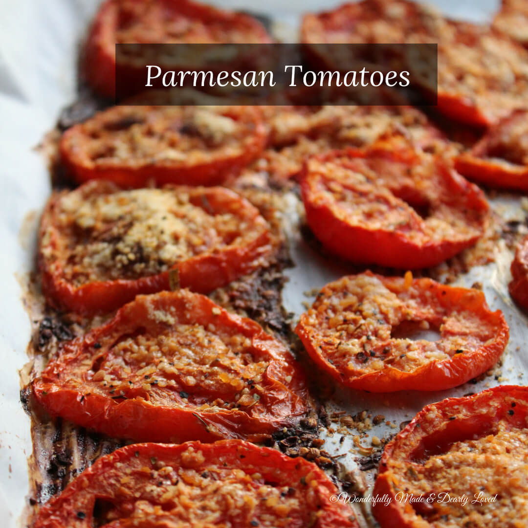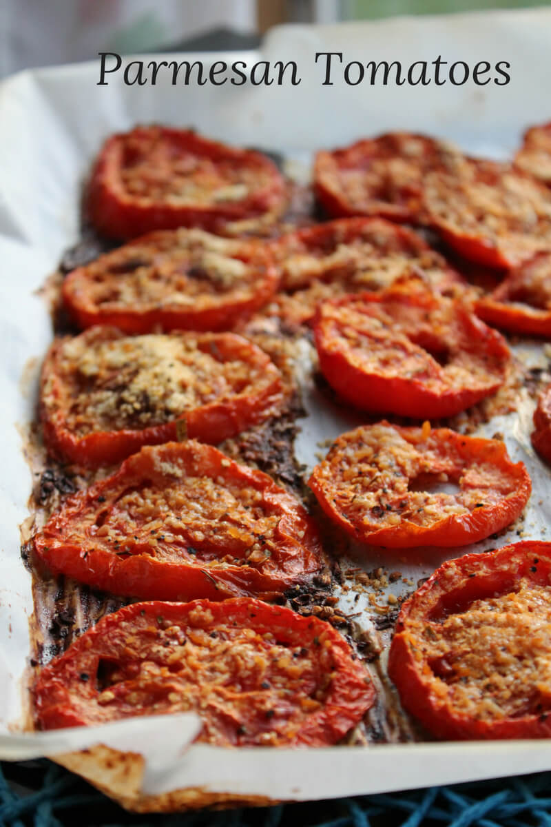 It’s tomato season so we are always looking for ways to use the bounty of the garden in healthy ways. Adding these parmesan tomatoes to your salads or as a small extra side dish gives you all the benefits that tomatoes are famous for.