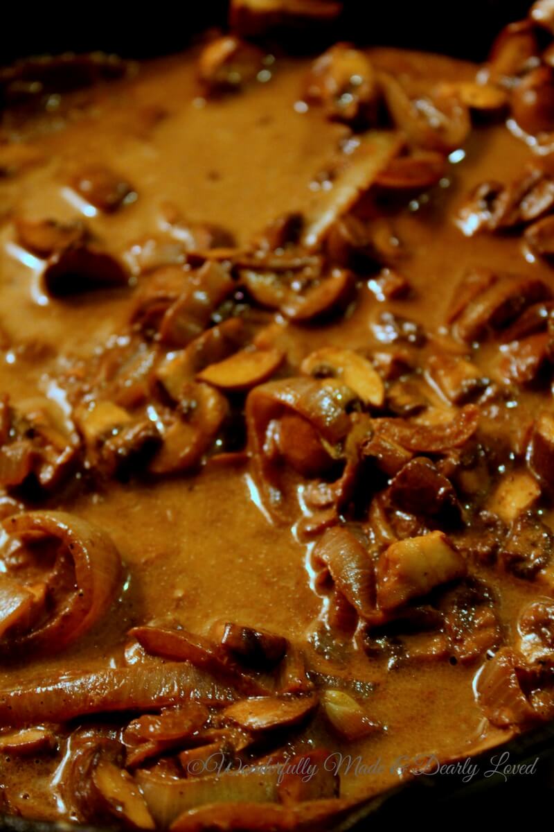 The mushroom and onion pan gravy in this recipe is simple to make and requires no special ingredients or gadgets. You have the option of thickening your gravy with xanthan gum or gluccie, but you really don’t have too.
