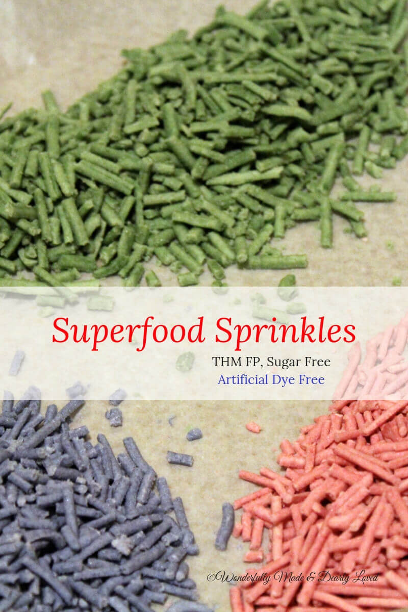 Superfood powders add trace minerals and vitamins to anything they are added too. These powders last a long time, because you are only using about 1/8 – 1/4 tsp per serving or batch of sprinkles.